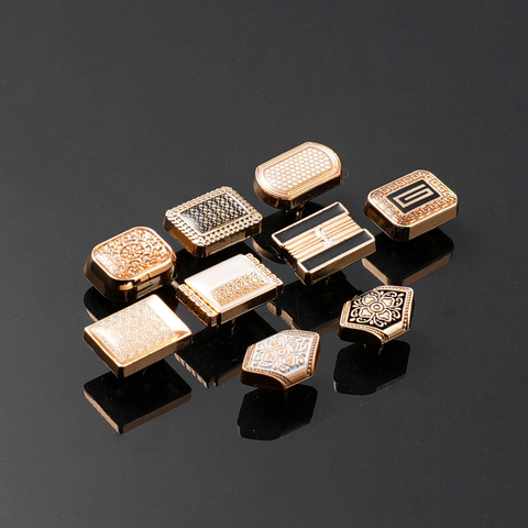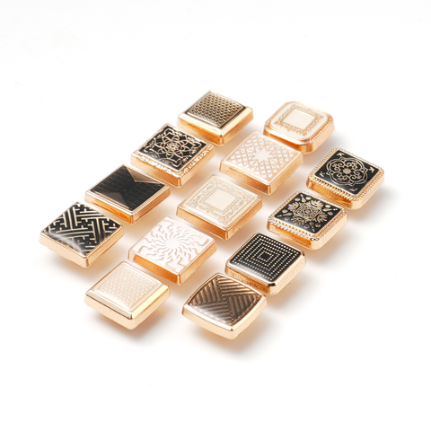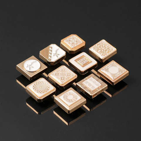Jinyi düğme fabrika 10mm 12mm yuvarlak kare çinko alaşım düğme Metal özel desen Logo marka Thobe yapış düğmeler için giysi